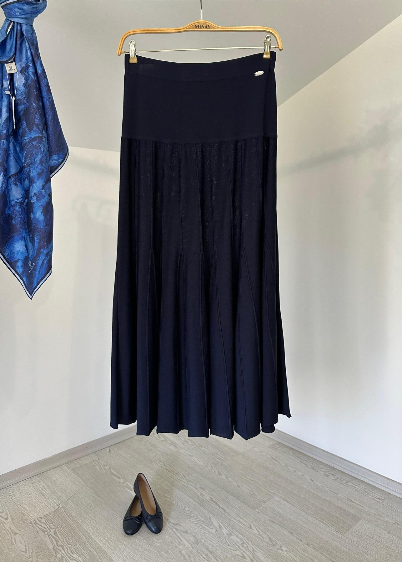 2005 Nervürlü İtalyan Rayon İplik Triko Etek-Laci
