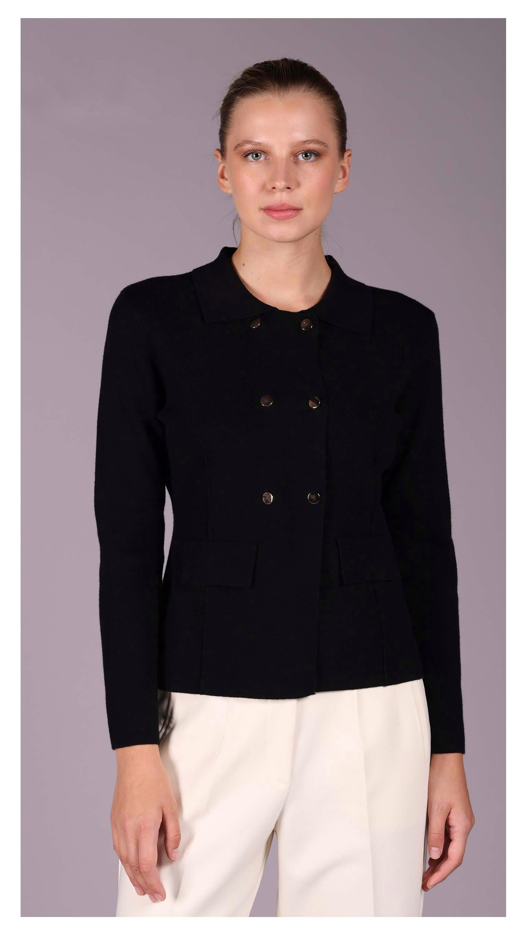 2573 Kruvaze Kapama Triko Ceket-Siyah