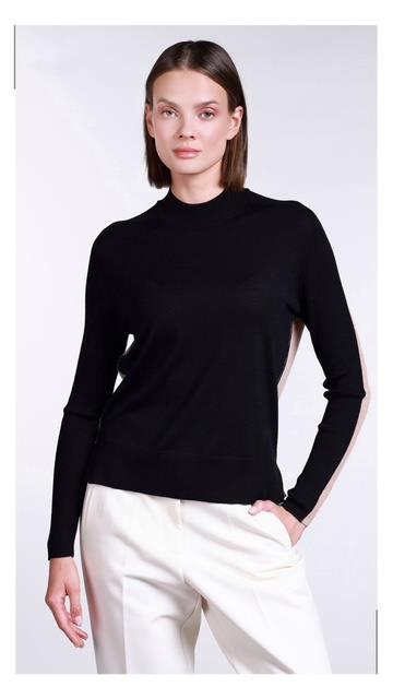 2756 İki Renkli Sıfır Yaka Triko Bluz-Siyah