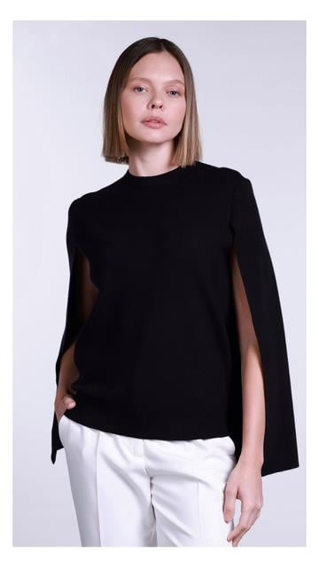 2775 Pelerin Görünümlü Kolsuz Bluz-Siyah