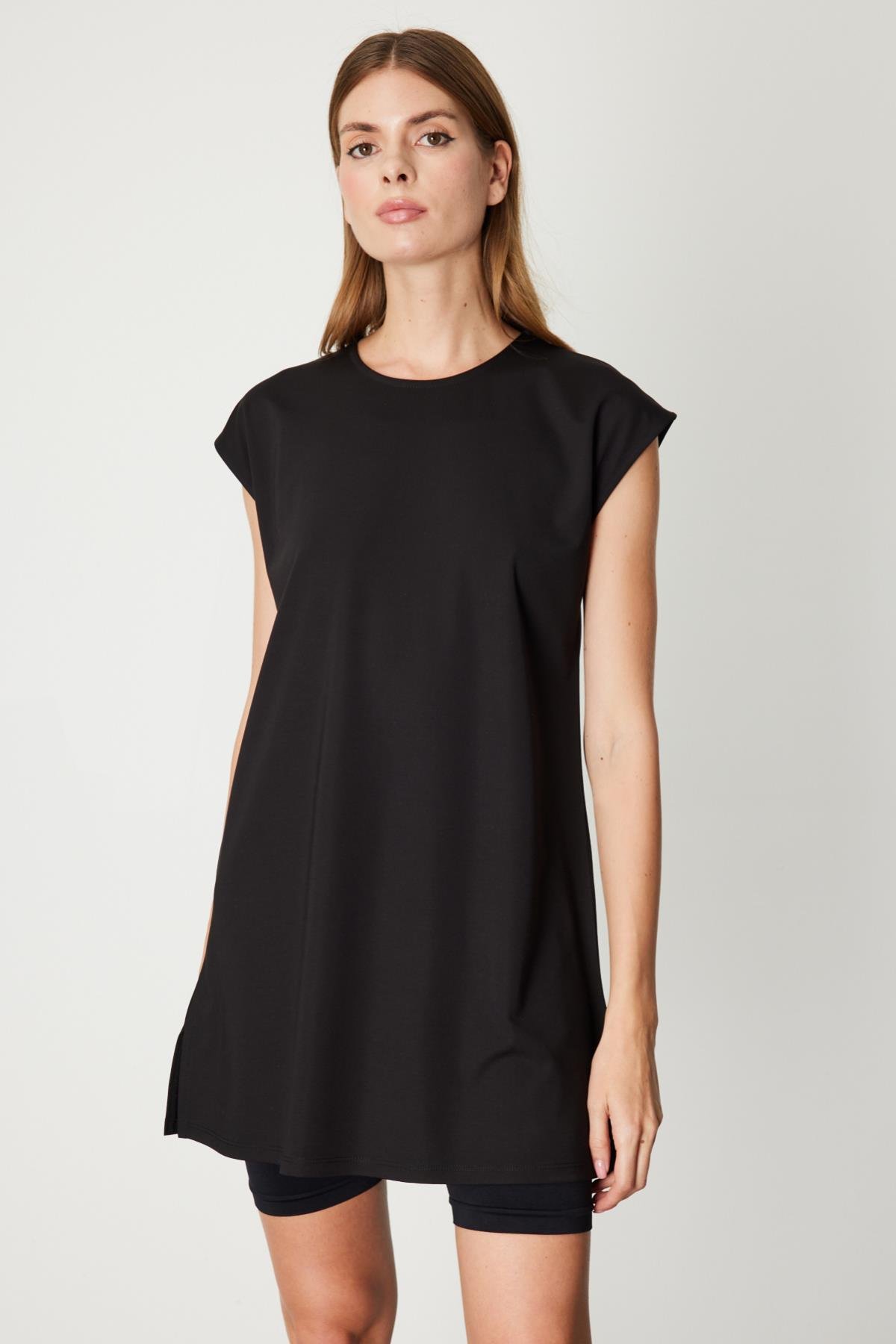 61419 Sıfır Yaka Basic Tunik-Siyah