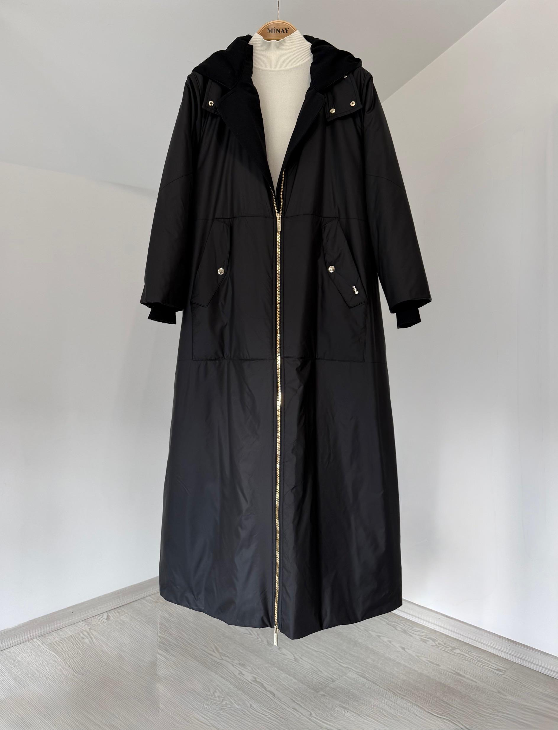 8011K Seyyar Kapüşonlu Dolgulu Pardesü-Siyah
