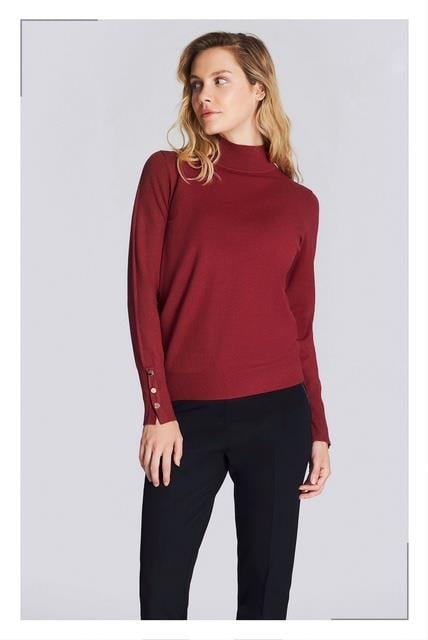 8014 Manşeti Düğme Aksesuarlı Dik Yaka Triko Bluz-Bordo